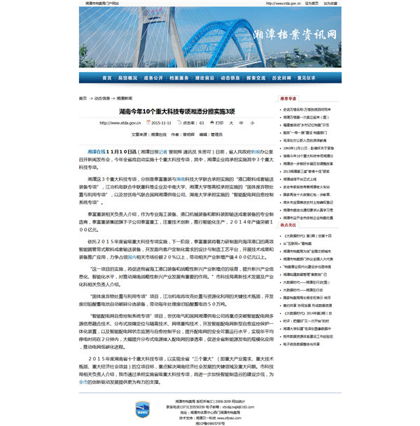 湘潭市檔案局門戶網站文章終顯頁效果圖