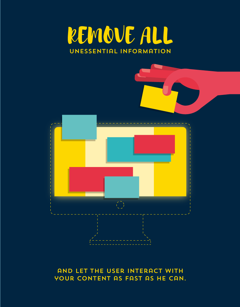 你要學(xué)會移除非必須的信息,讓用戶可以盡可能快地同你的網(wǎng)頁內(nèi)容進(jìn)行交互。