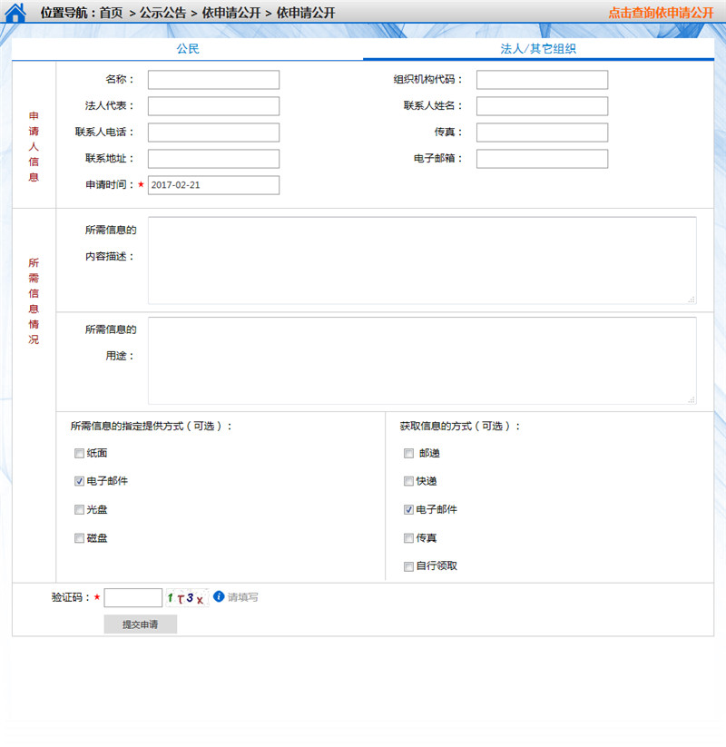 3. 對申請和答復(fù)的信息在網(wǎng)站上進(jìn)行公開顯示