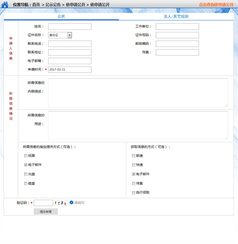 依申請公開功能,就是行政機(jī)關(guān)根據(jù)公民、法人或者其他組織的申請,依照法律規(guī)定和本機(jī)關(guān)的職權(quán),向申請人公開政府信息的行政行為。政府信息量大面廣,涉及社會(huì)生產(chǎn)生活各個(gè)方面,其中有相當(dāng)一部分信息只涉及部分人和事,只對特定的公民、法人和其他組織從事生產(chǎn)、安排生活、開展科研等活動(dòng)具有特殊的作用。為了保證公民、法人或者其他組織獲取所需要的政府信息,依照相關(guān)規(guī)定除行政機(jī)關(guān)主動(dòng)公開的政府信息外,公民、法人或者其他組織還可以根據(jù)自身生產(chǎn)、生活、科研等特殊需要,向國務(wù)院部門、地方各級(jí)人民政府及縣級(jí)以上地方人民政府部門申請獲取相關(guān)政府信息。