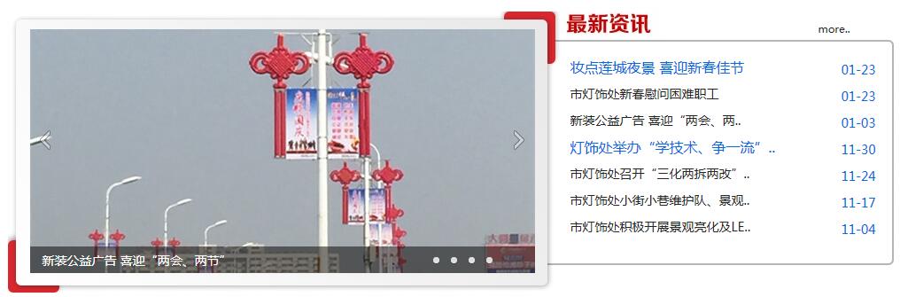 湘潭市燈飾管理處官方網(wǎng)站全權(quán)交由湘潭貝一科技有限公司設(shè)計制作。以燈飾、亮麗為主題,將視覺標(biāo)志化,用視覺來增加官方的識別度,讓大眾在第一眼后就能清晰的辨別出這是一個以燈飾為主題的官方網(wǎng)站,精美的美工小細(xì)節(jié)圖如下: