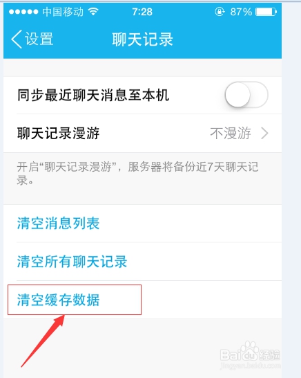 第四步進入“聊天記錄”頁面后,我們找到“清空緩存數(shù)據(jù)”: