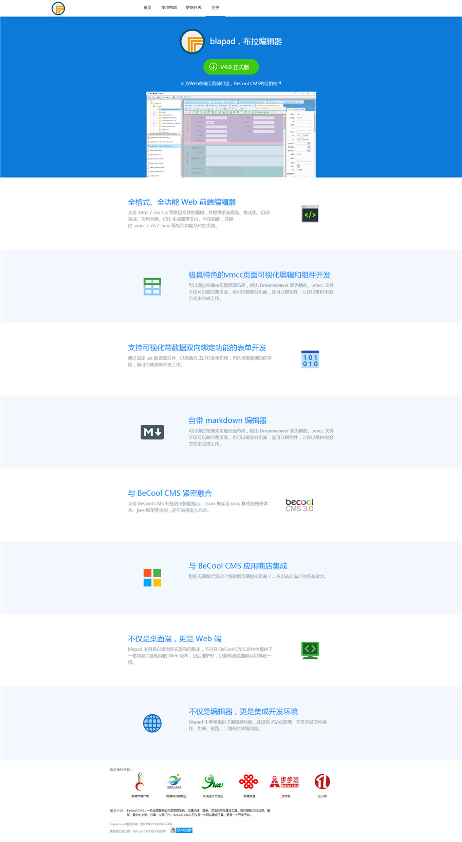 布拉編輯器是 BeCool CMS 最佳開發(fā)伴侶,為其量身定做了很多功能,當然,在不采用 BeCool CMS 作為后臺的網(wǎng)站,也可以采用布拉編輯器,是前端開發(fā)的一枚利器。