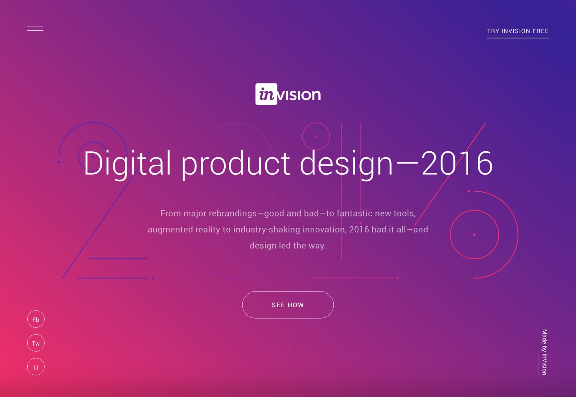 除開(kāi)其他的目的,設(shè)計(jì)師使用色彩或者調(diào)整色彩的目的,基本都是為了創(chuàng)造設(shè)計(jì)的一致性。InVision 的年度總結(jié)頁(yè)面使用了從粉色到紫色的漸變,在頁(yè)面的下方,粉色和紫色同樣應(yīng)用到了按鈕中,此外,在著陸頁(yè)當(dāng)中,將對(duì)比度明顯的白色置于粉色+紫色的背景之上,確保信息的清晰呈現(xiàn)。如果色彩每次都不一樣,那么整個(gè)設(shè)計(jì)看起來(lái)就不是那么令人難忘了。