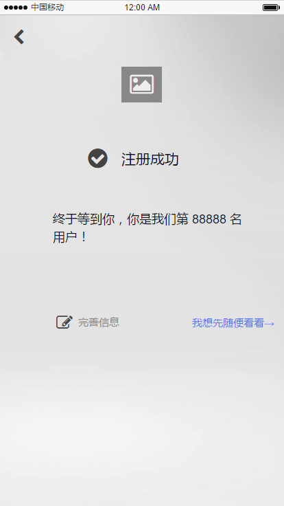 在做App注冊(cè)的時(shí)候也可以這樣,當(dāng)用戶注冊(cè)成功之后,可以先不著急跳轉(zhuǎn)到個(gè)人中心,而是給用戶呈現(xiàn)一個(gè)激勵(lì)信息,比如“終于等到你!你是我們第 888 名用戶”這樣的反饋信息,還可以加上簡(jiǎn)單的引導(dǎo)按鈕,讓用戶去完善信息,但一定不要給用戶施加壓力,要讓用戶有自由選擇的機(jī)會(huì)。如下圖: